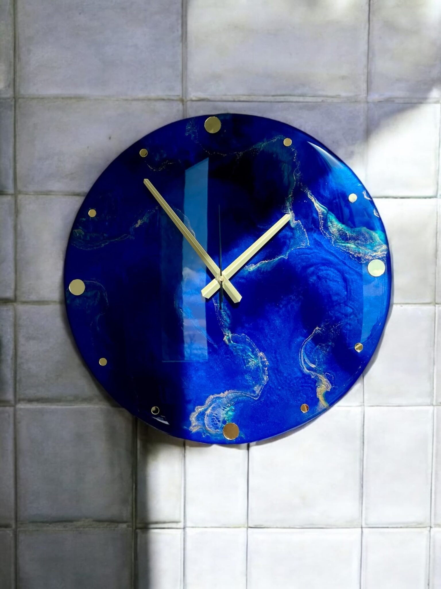 Zamów swój Granatowy Zegar Ścienny z Żywicy Epoksydowej już dziś i ciesz się pięknem, które łączy nowoczesność z elegancją!