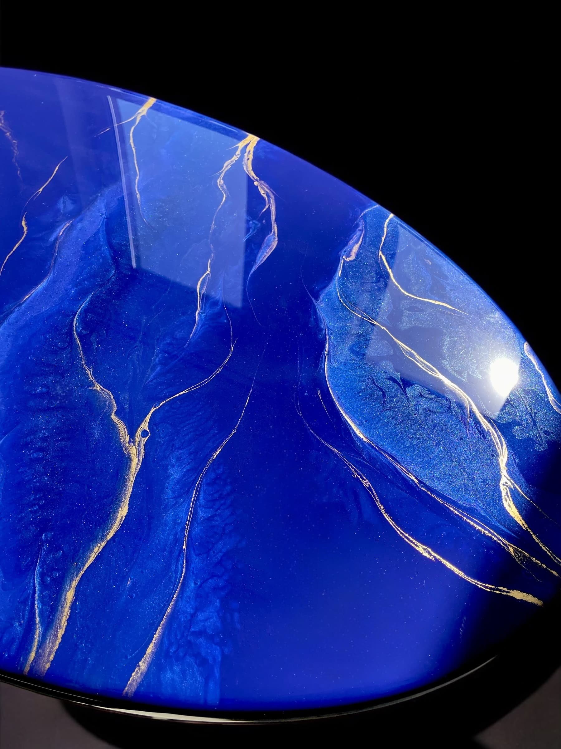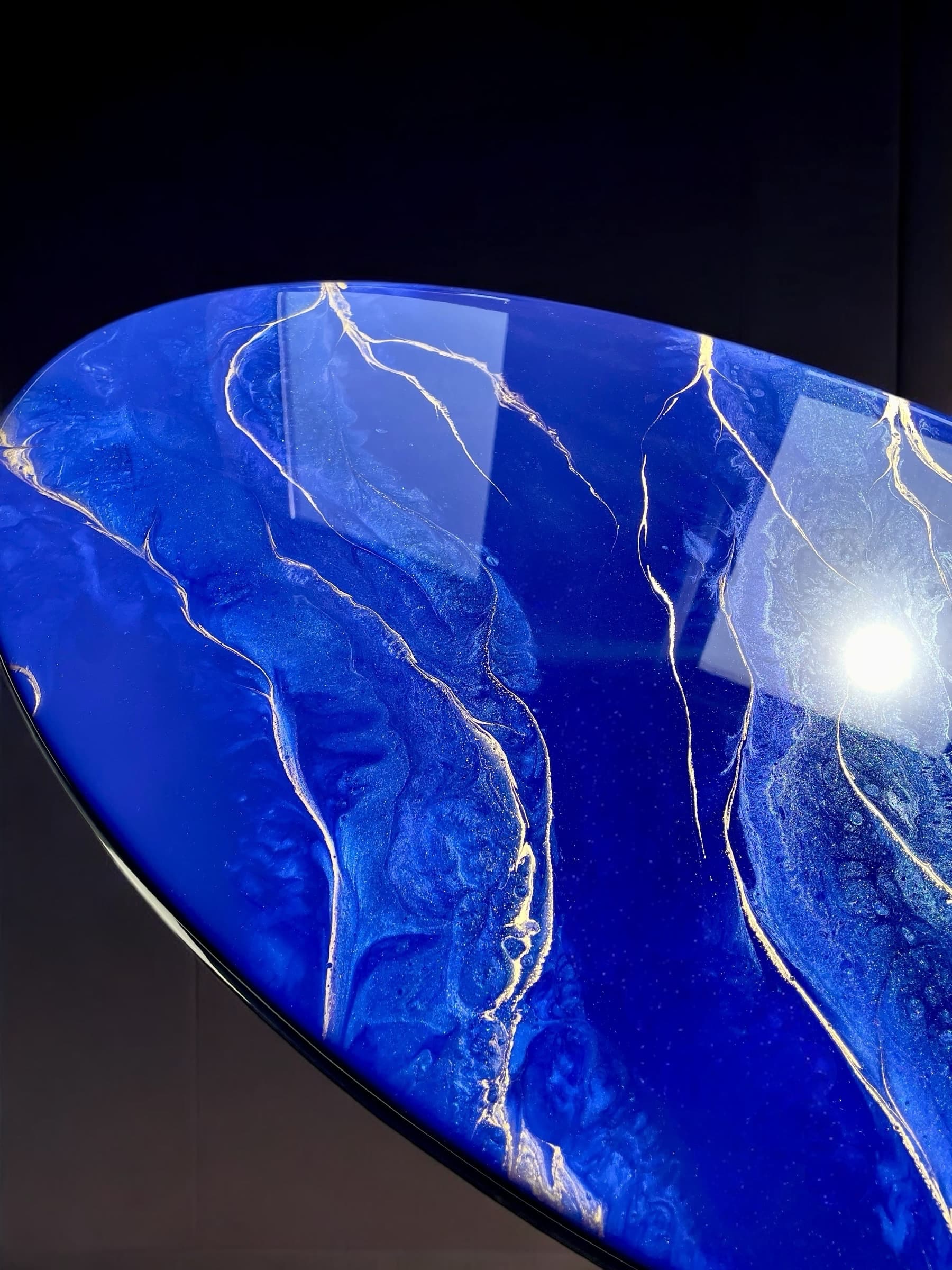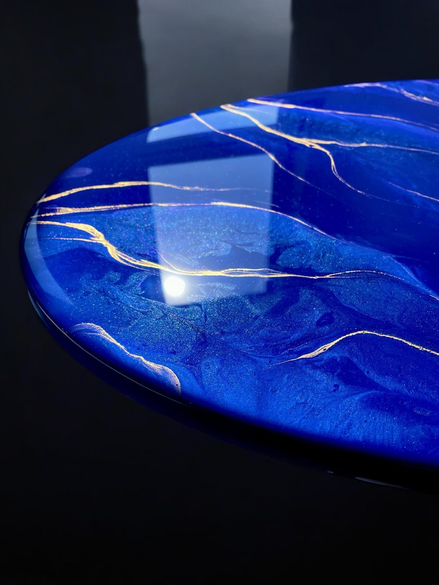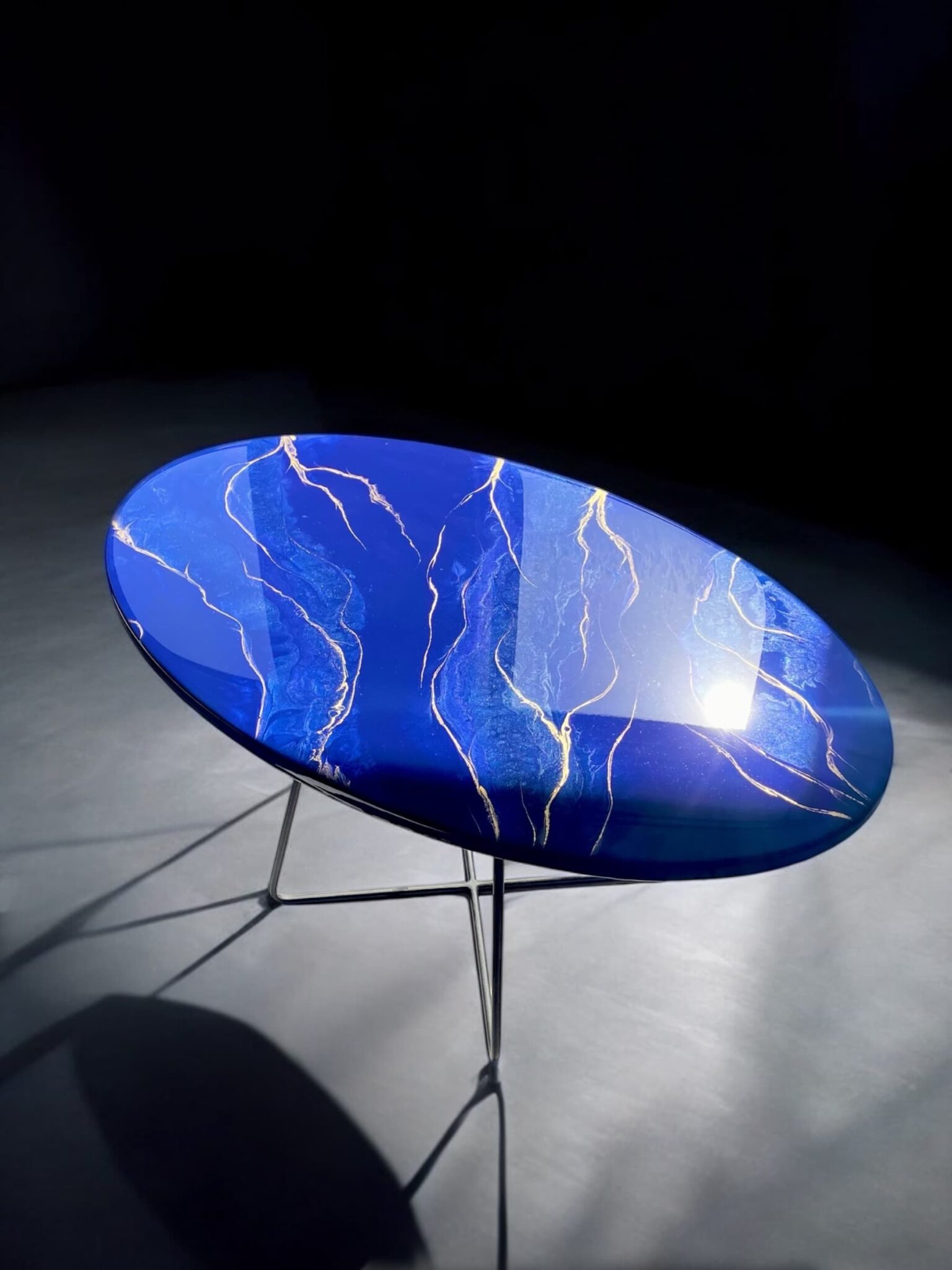 Odkryj unikalny stolik, który wniesie do Twojego wnętrza elegancję i nowoczesność! Mój ręcznie wykonany stolik z żywicy epoksydowej to prawdziwe dzieło sztuki, które harmonijnie łączy w sobie piękne odcienie szafiru z subtelnymi akcentami złota.