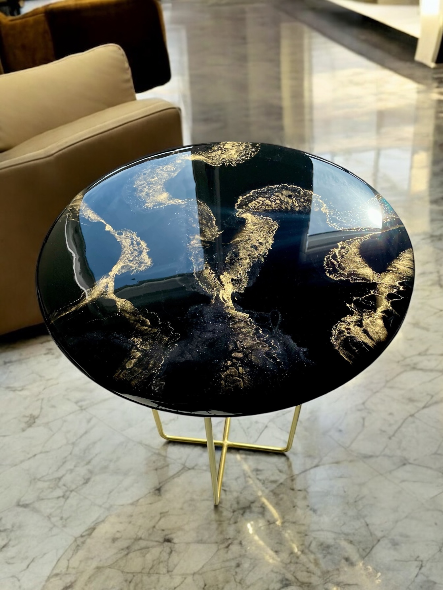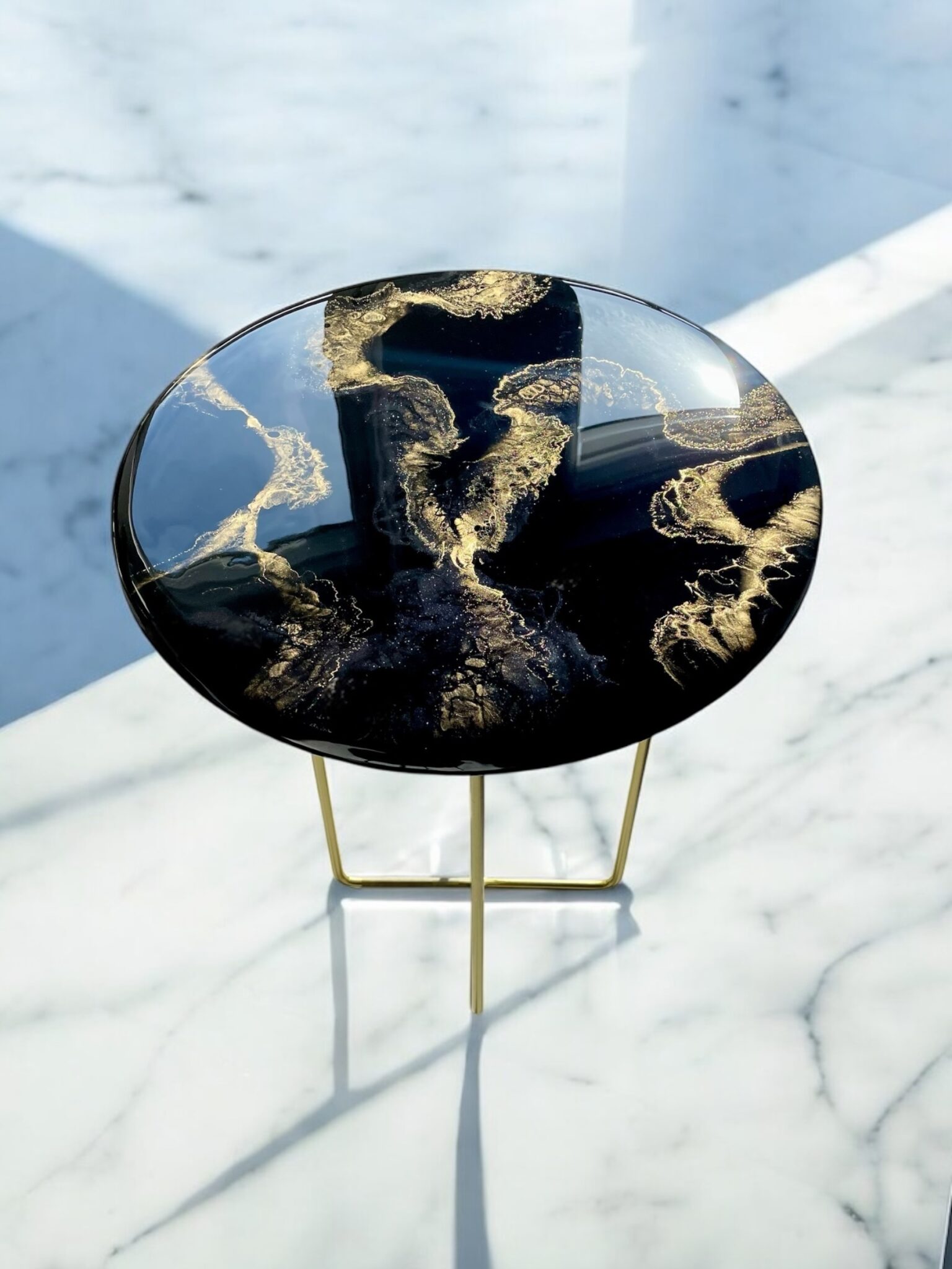 Odkryj wyjątkowy styl i elegancję z moim stolikiem bocznym z żywicy epoksydowej! Idealny dla tych, którzy pragną dodać swojemu wnętrzu odrobinę luksusu i nowoczesności.
