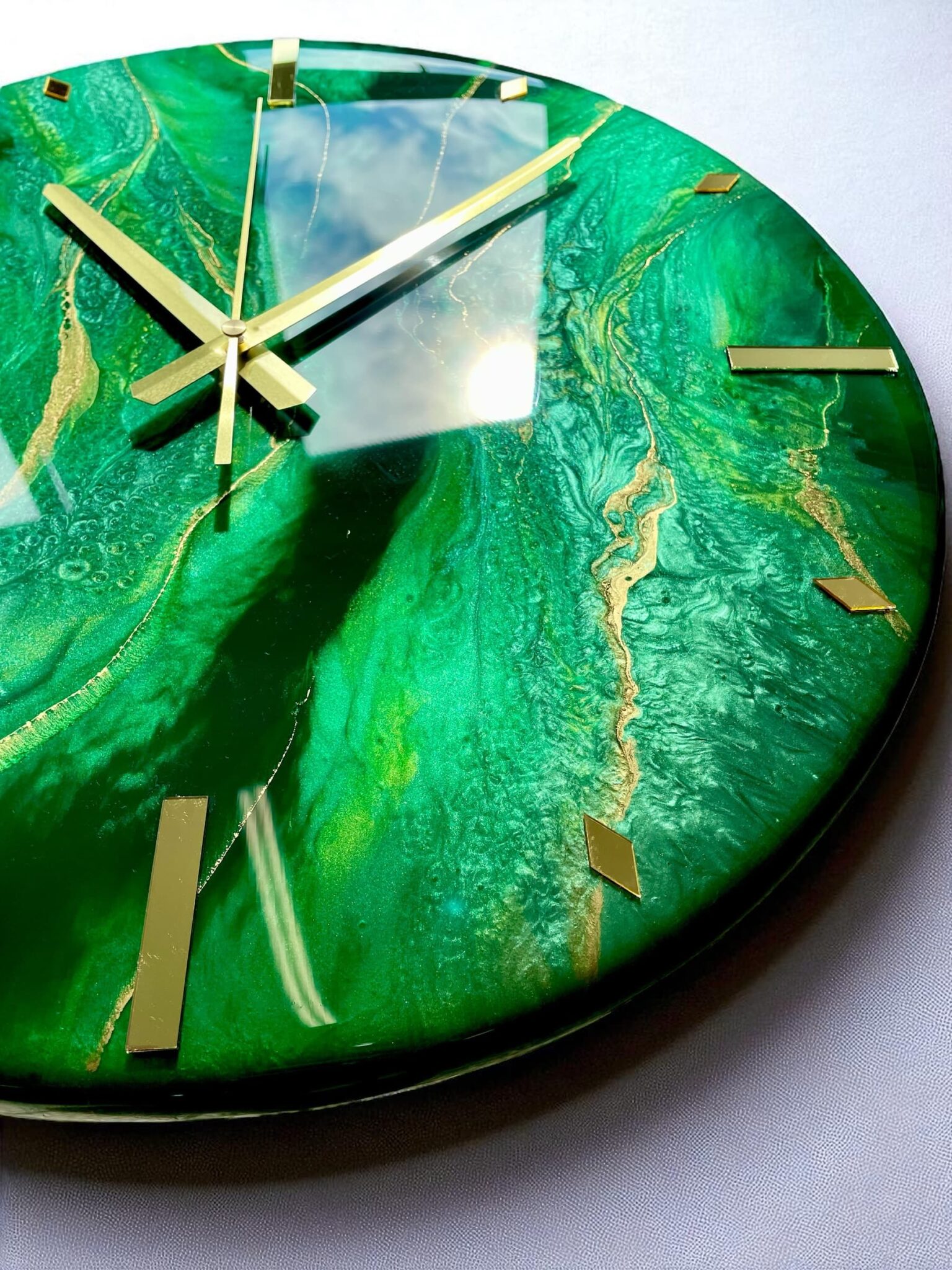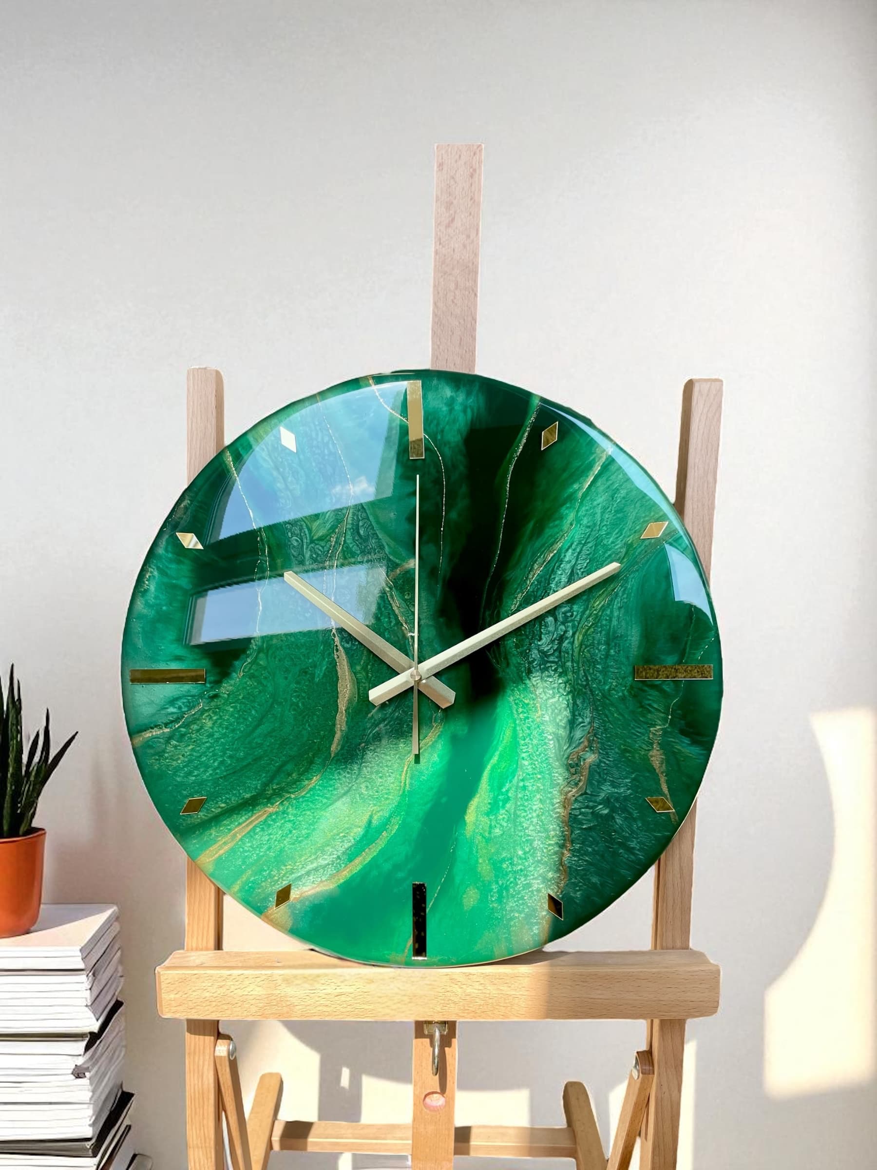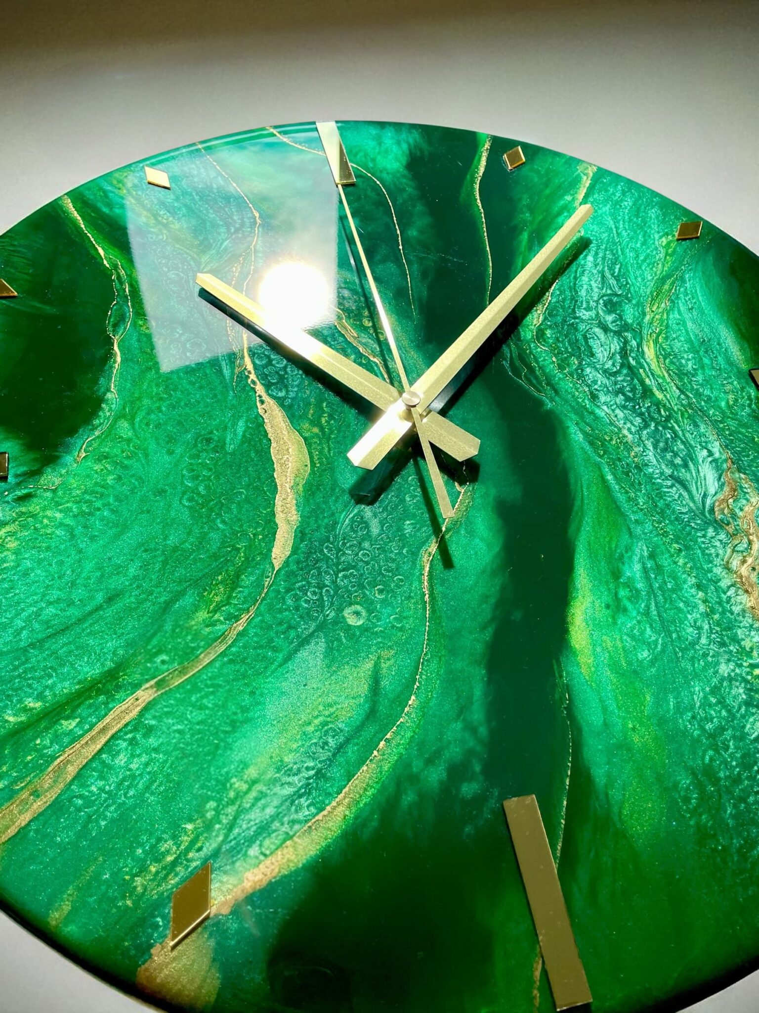 Zamów swój Zielony Zegar Ścienny z Żywicy Epoksydowej już dziś i ciesz się pięknem, które łączy nowoczesność z elegancją!