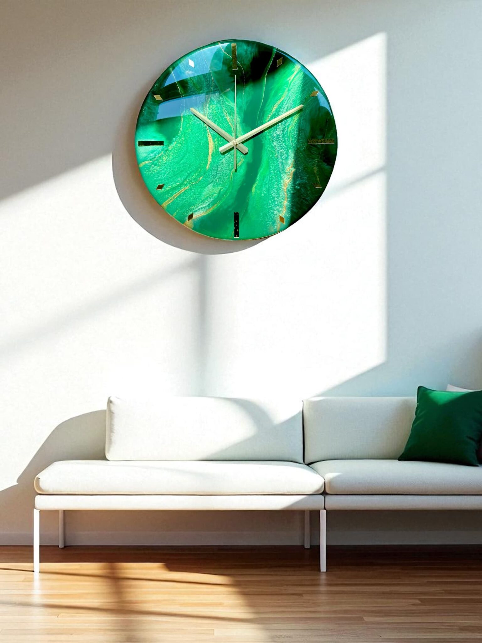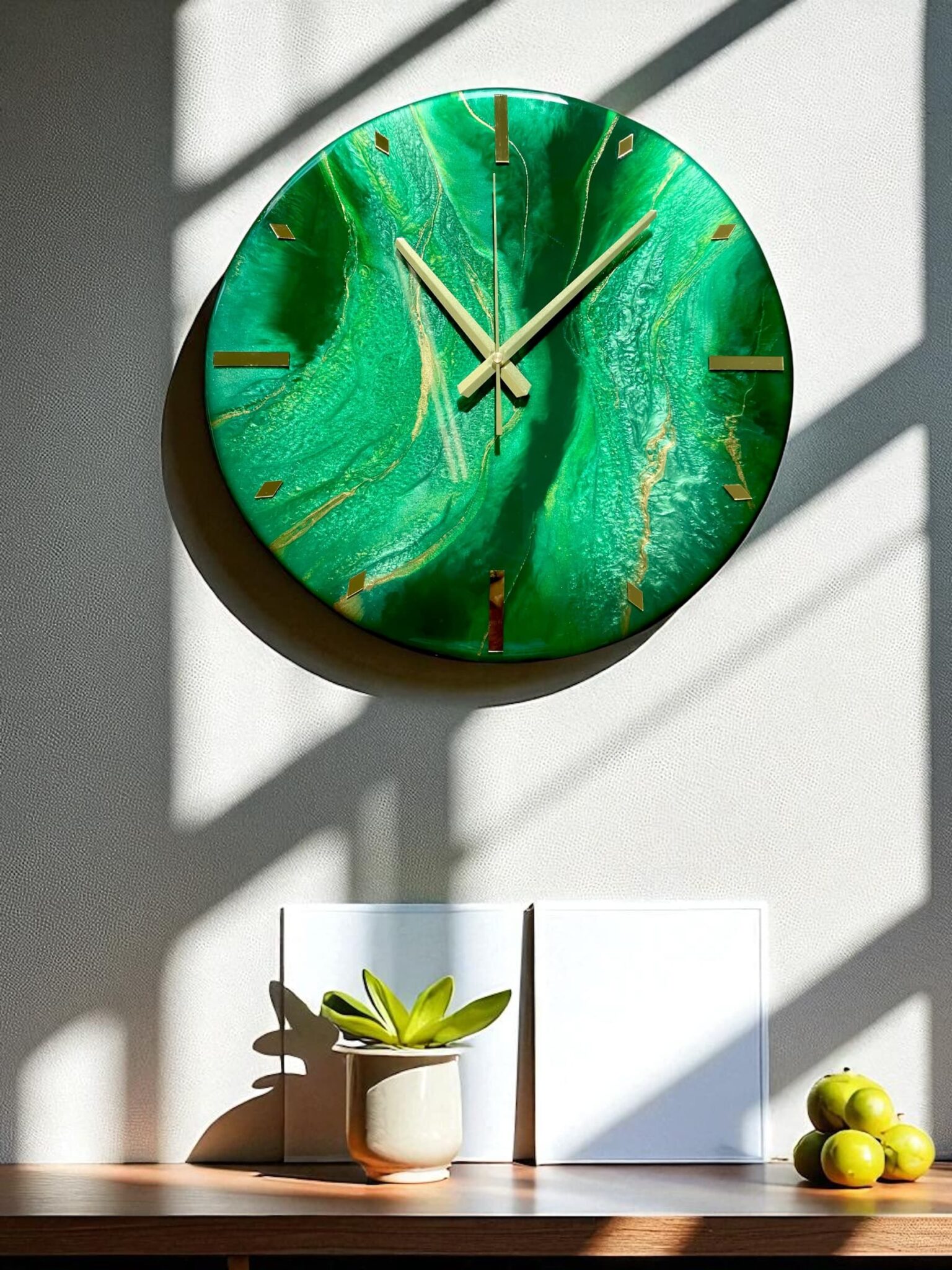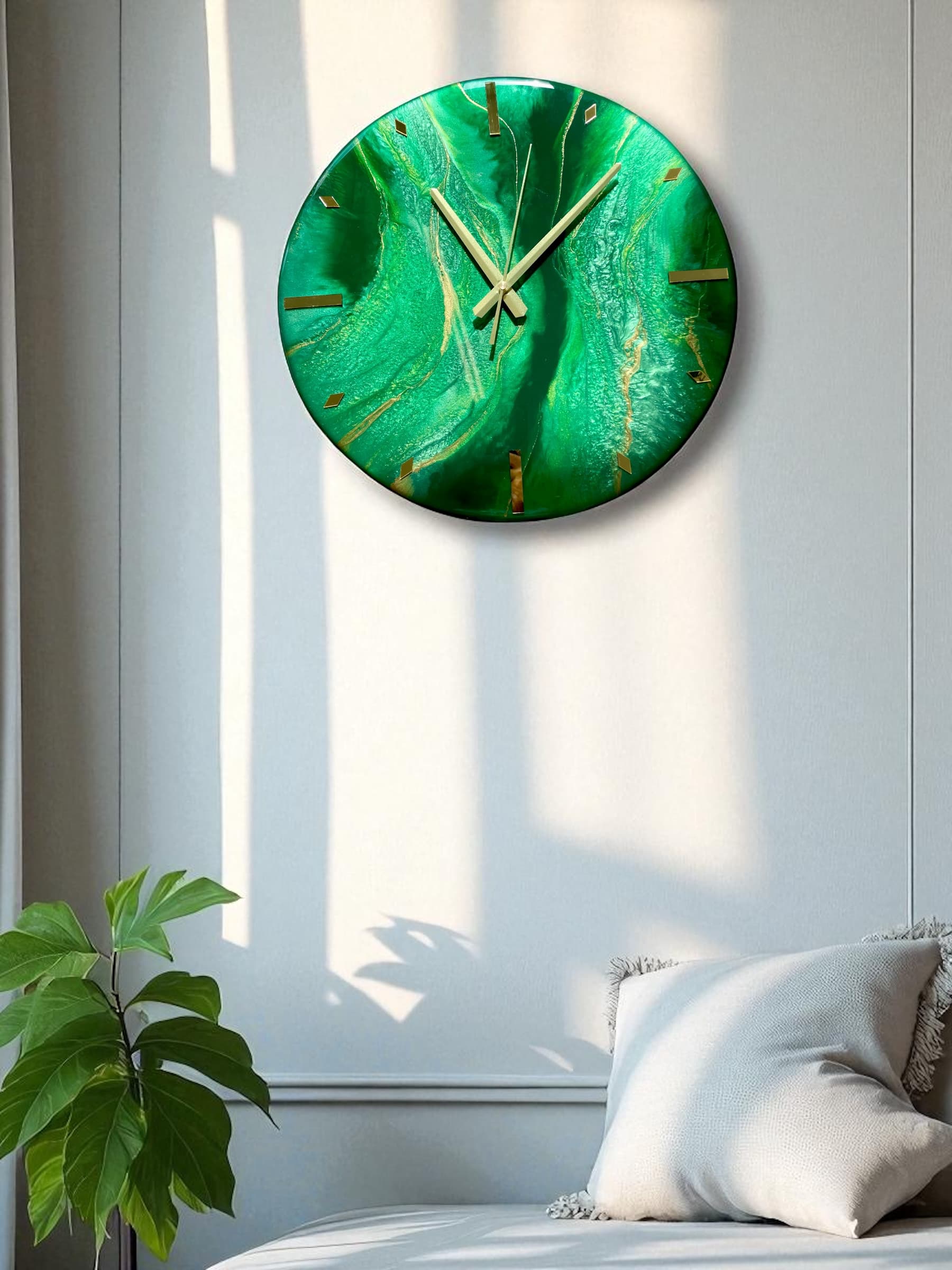 Zamów swój Zielony Zegar Ścienny z Żywicy Epoksydowej już dziś i ciesz się pięknem, które łączy nowoczesność z elegancją!
