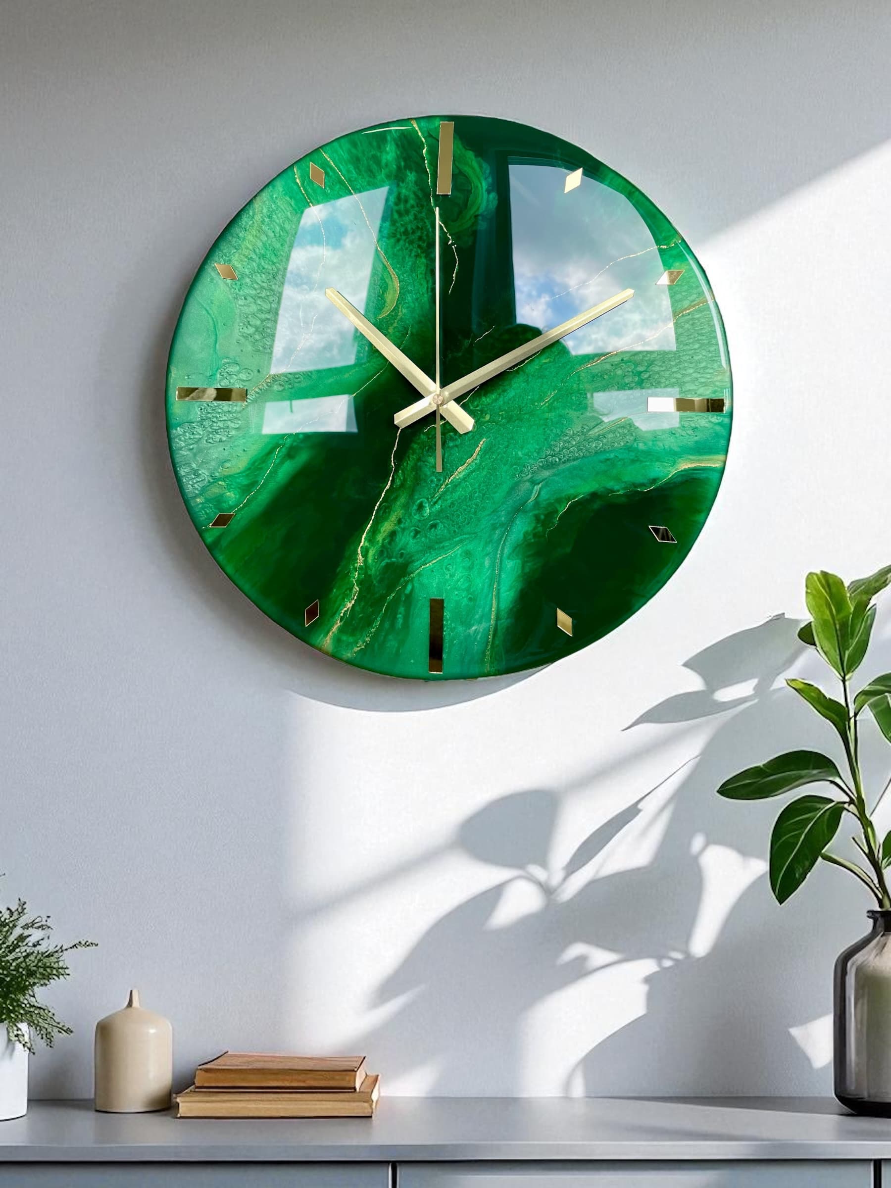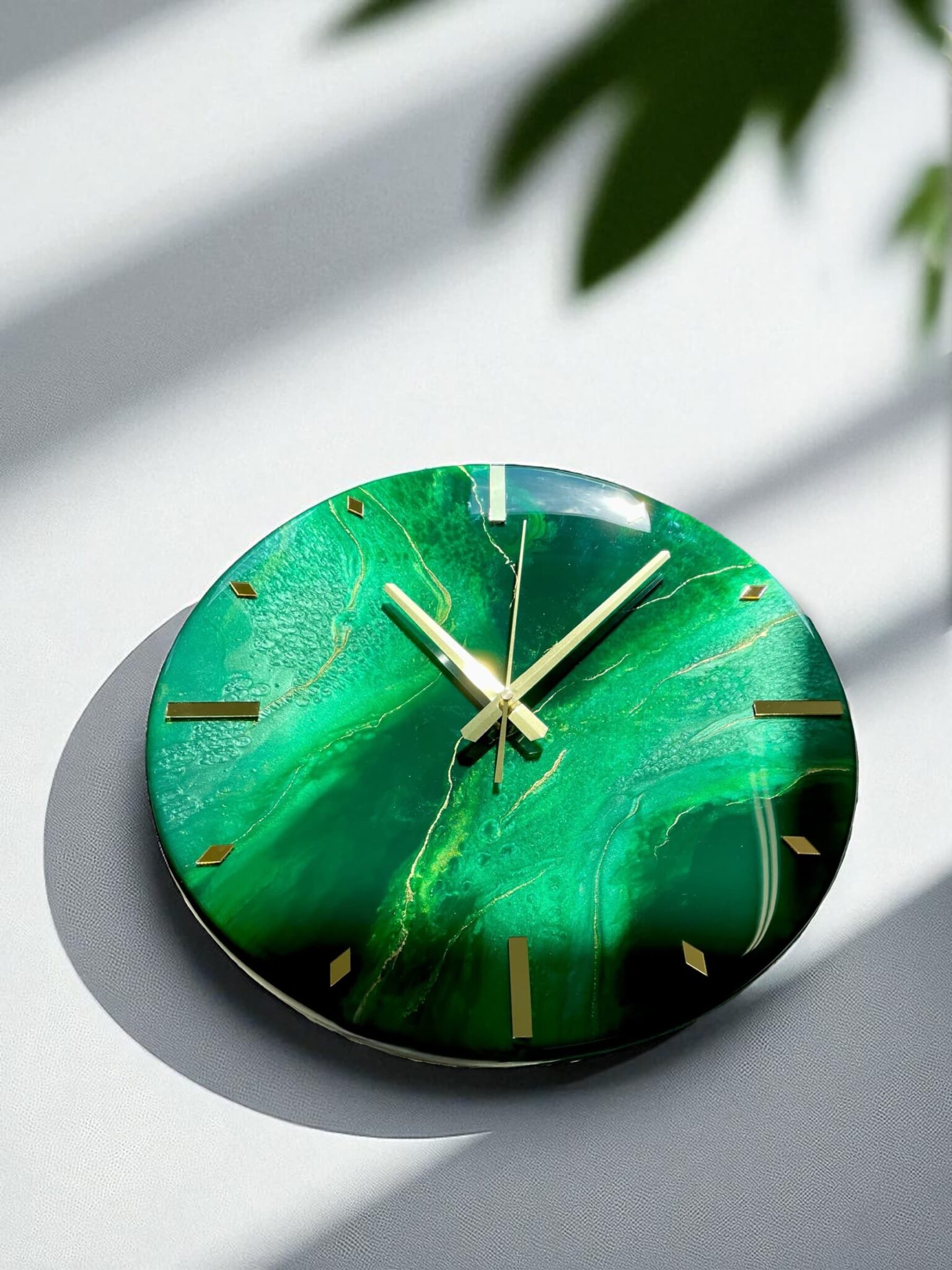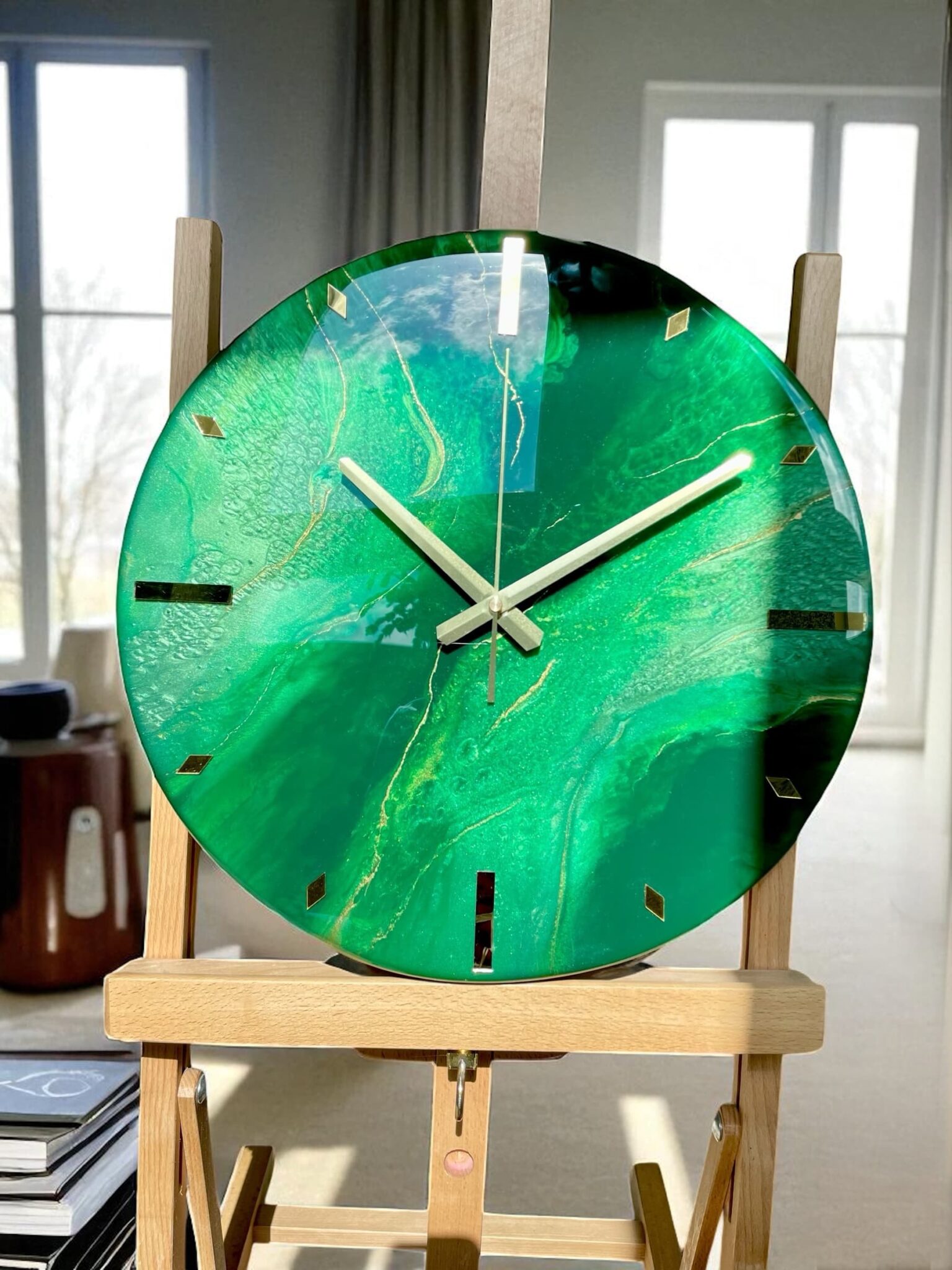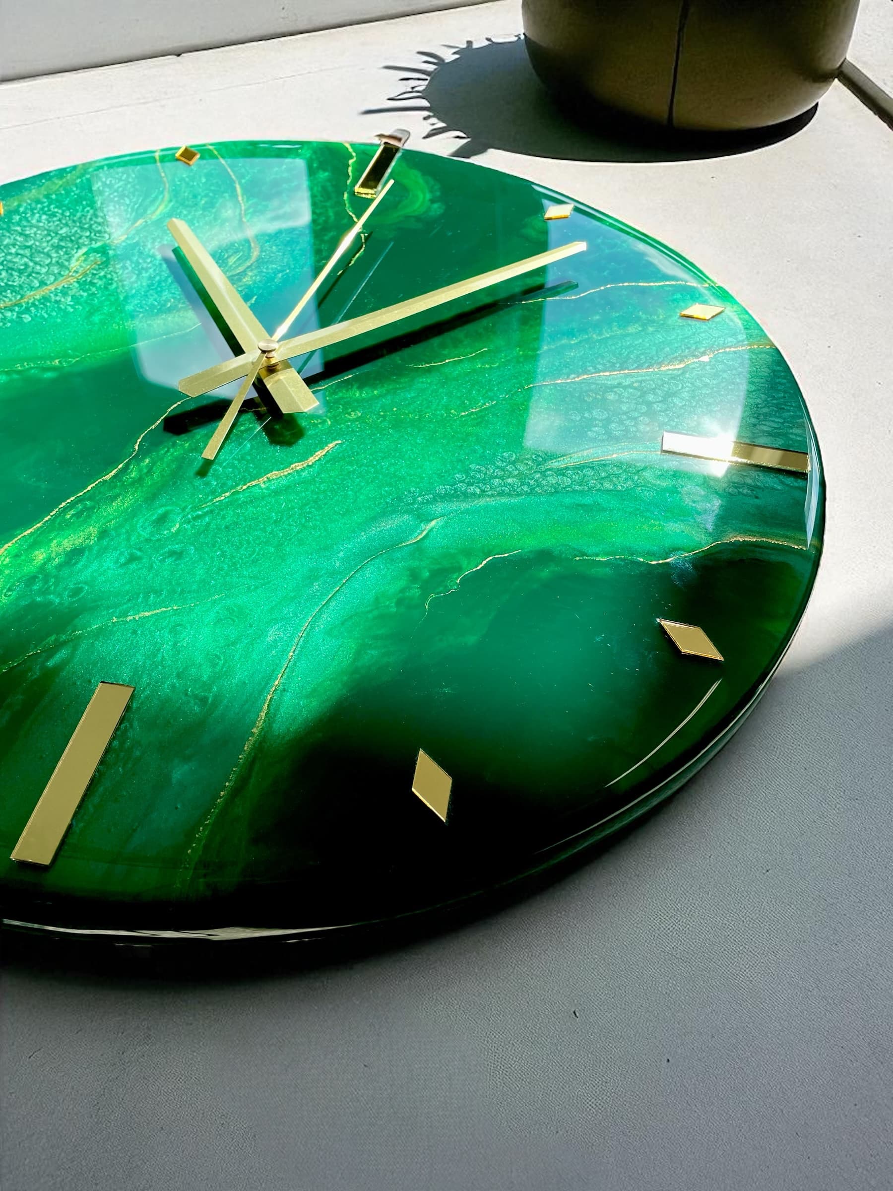 Zamów swój Zielony Zegar Ścienny z Żywicy Epoksydowej już dziś i ciesz się pięknem, które łączy nowoczesność z elegancją!