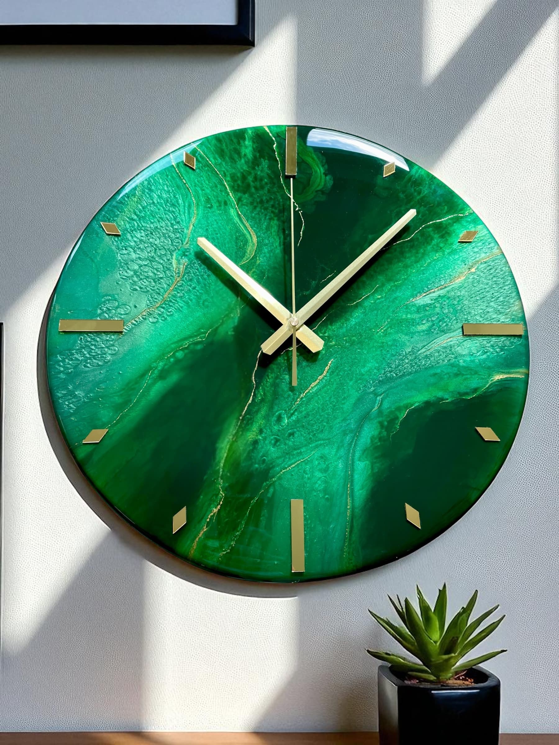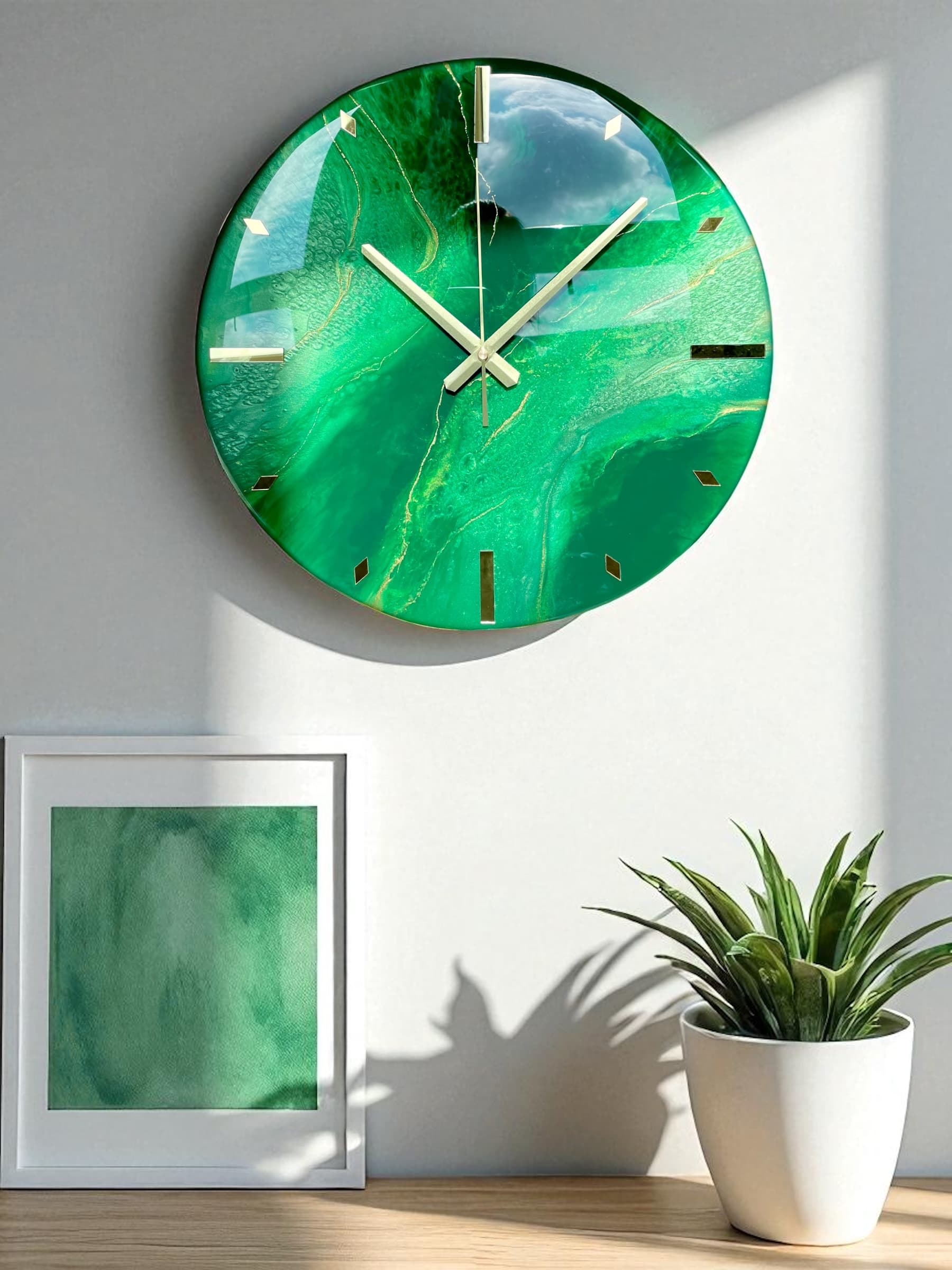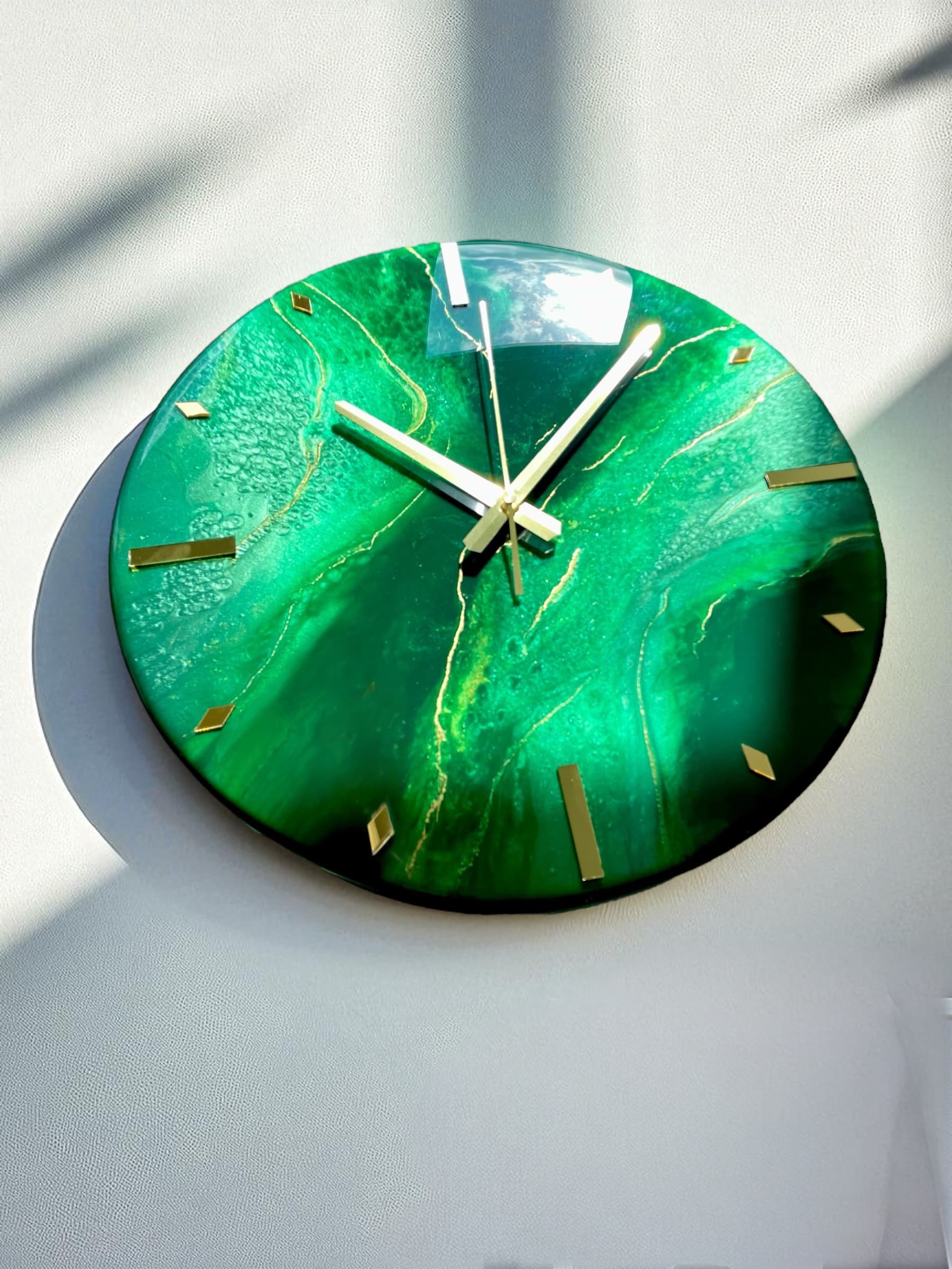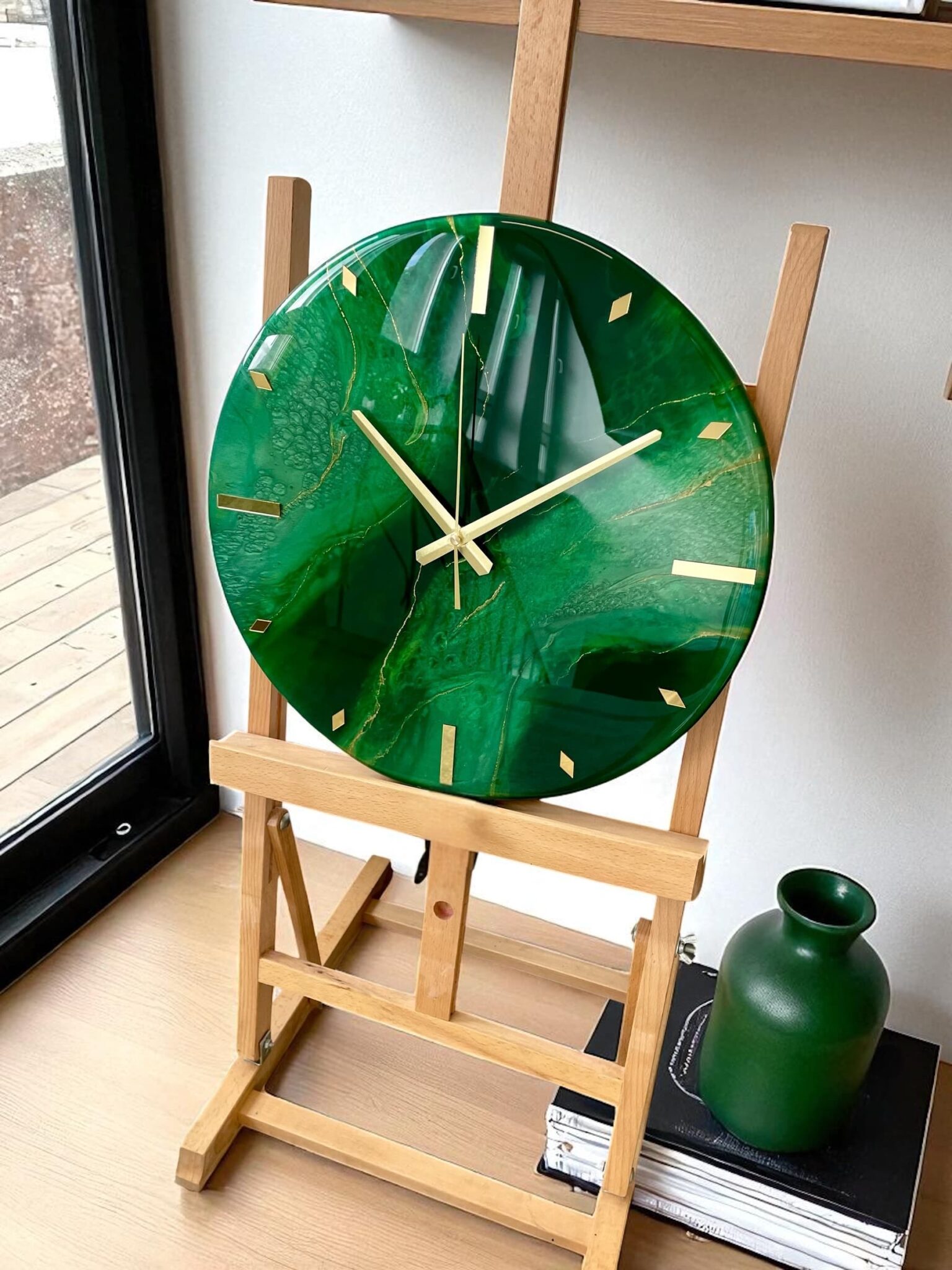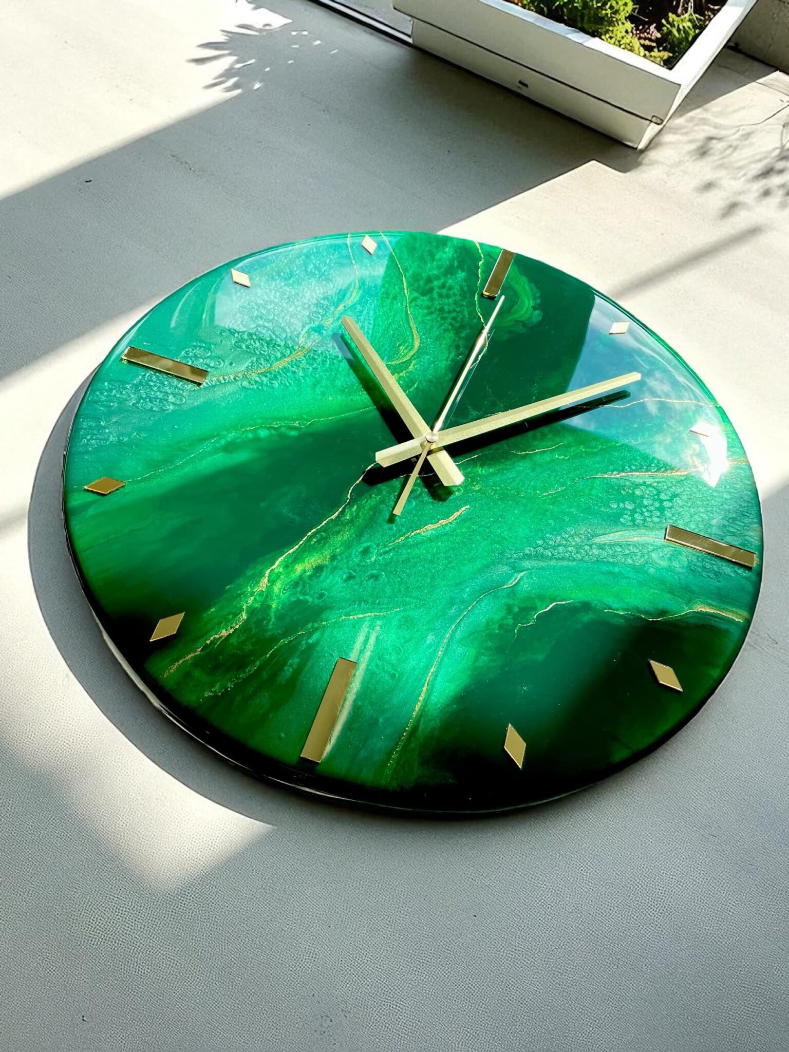 Zamów swój Zielony Zegar Ścienny z Żywicy Epoksydowej już dziś i ciesz się pięknem, które łączy nowoczesność z elegancją!